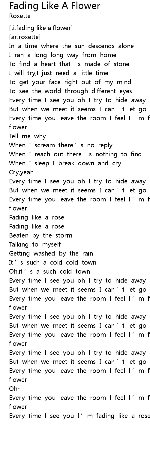 | [02:36.28] | Every time you leave the room I feel I ' m fading like a flower |