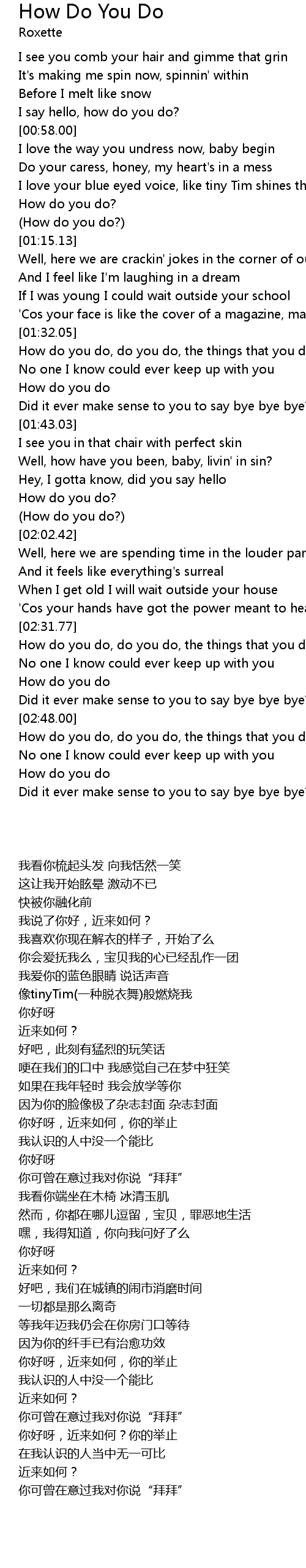 I say hello, how do you do? |