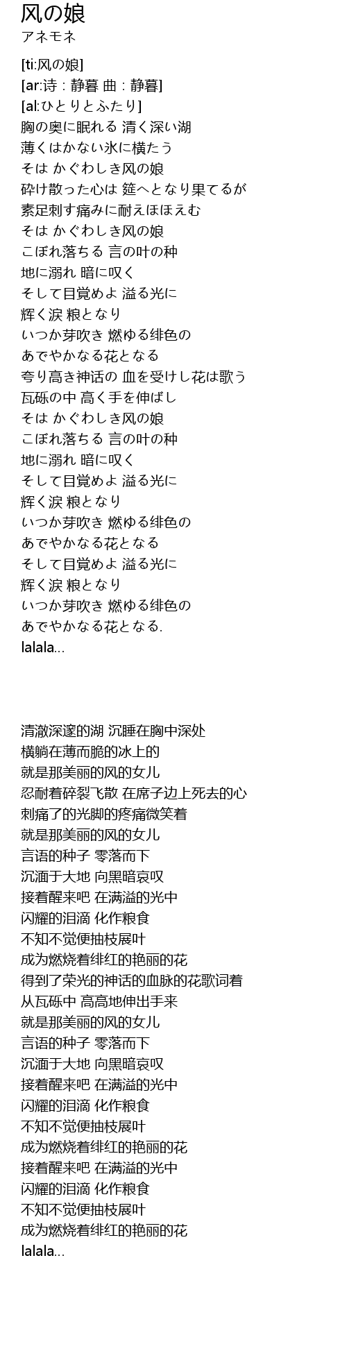 | [02:03.00] | 夸り高き神话の 血を受けし花は歌う |