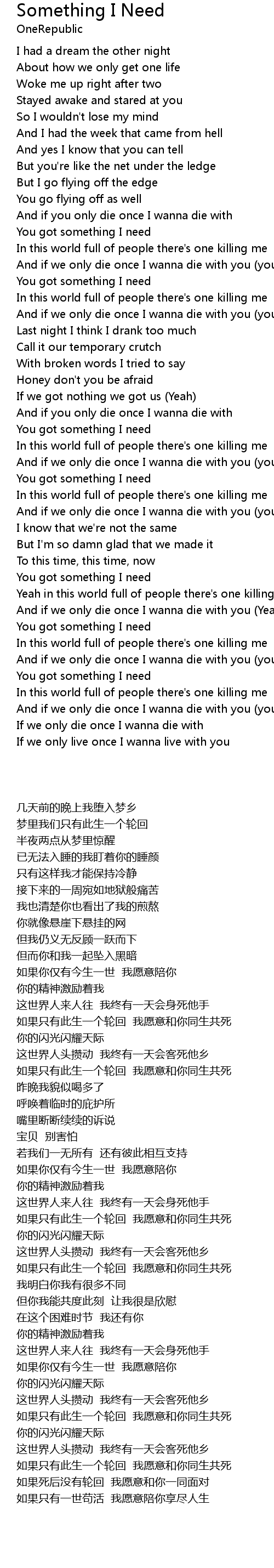 And if we only die once I wanna die with you (Yeah) |