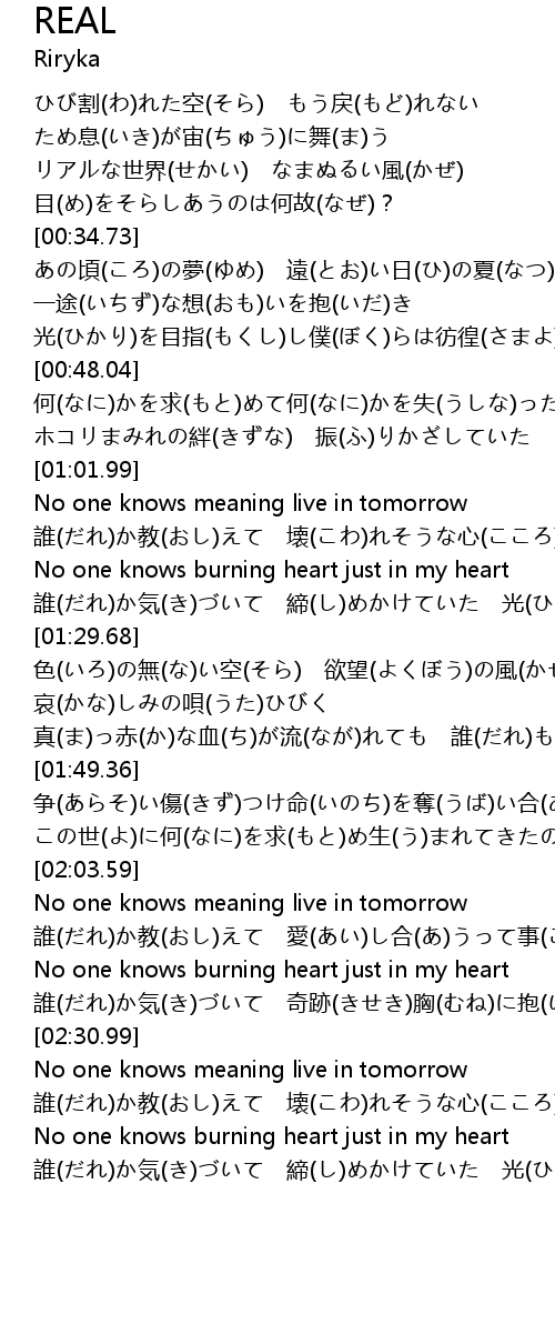 | [02:04.49] | No one knows meaning live in tomorrow |
