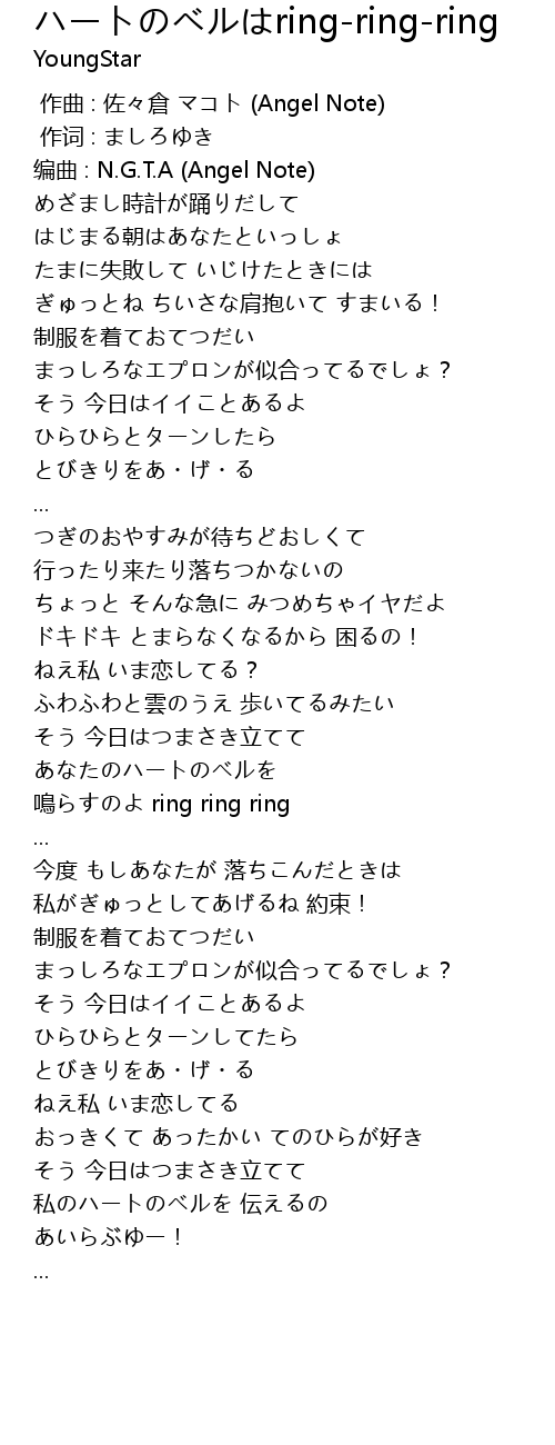 | [03:18.86] | 私のハートのベルを 伝えるの |