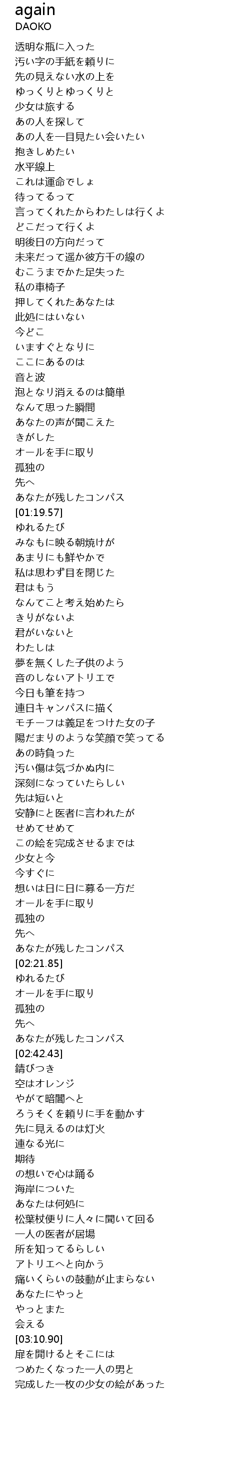 | [03:09.61] | やっとまた |