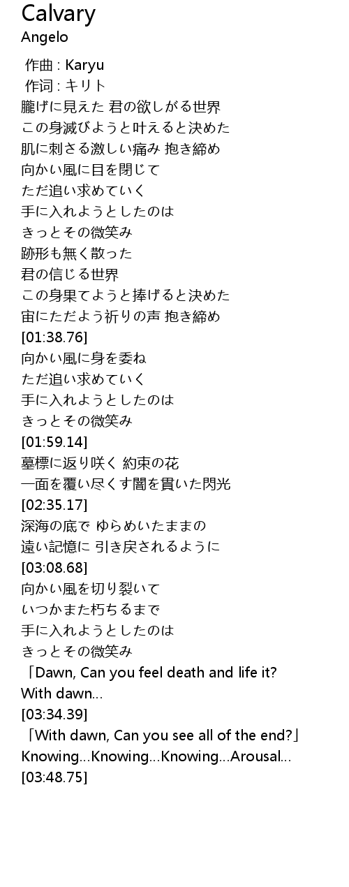| [03:28.29] | Dawn, Can you feel death and life it? |