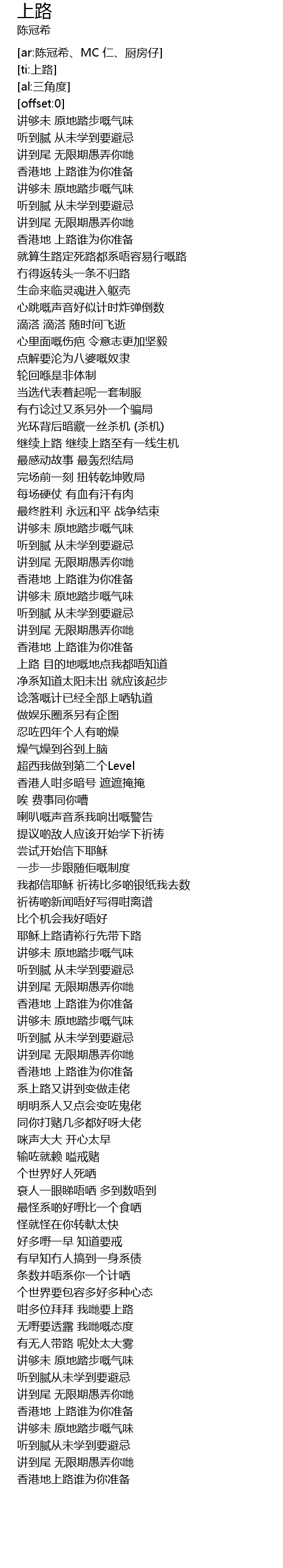 | [00:44.09] | 讲够未 原地踏步嘅气味 |