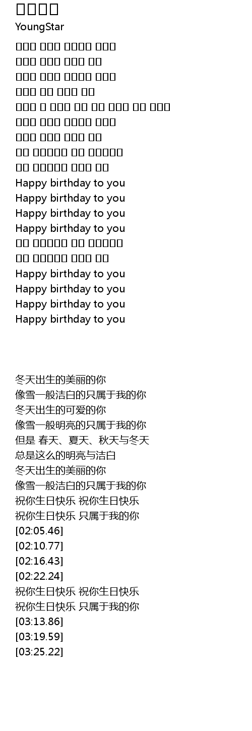 | [03:02.39] | 祝你生日快乐 只属于我的你 |