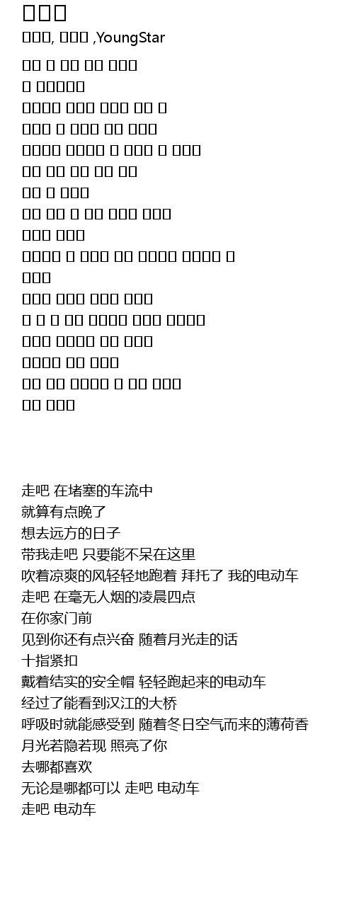 | [01:50.15] | 无论是哪都可以 走吧 电动车 |