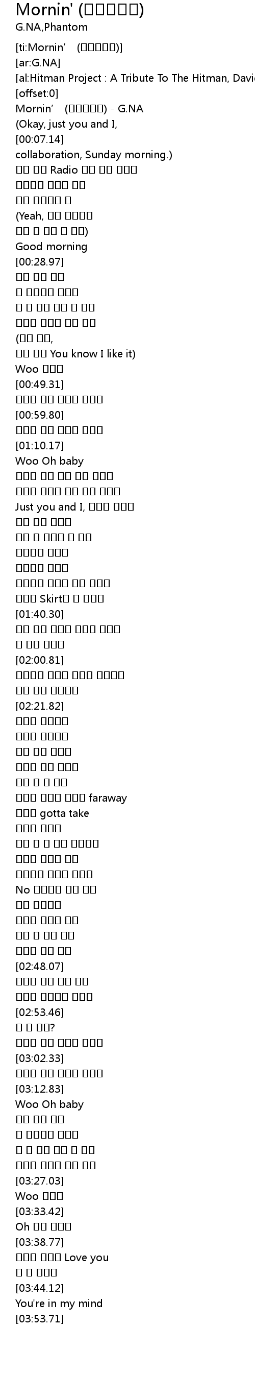 | [00:00.48] | Mornin' G. NA |