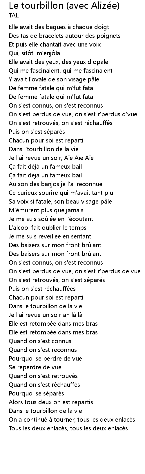 | 歌曲 | Le tourbillon (avec Alizée) |