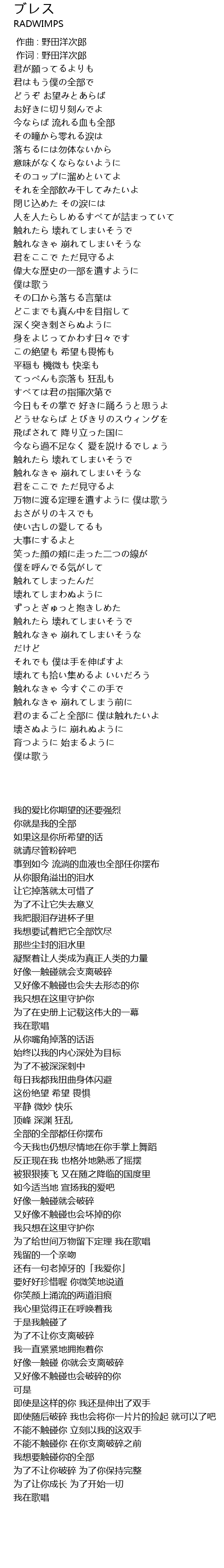| [00:01.00] | 作词 : 野田洋次郎 |