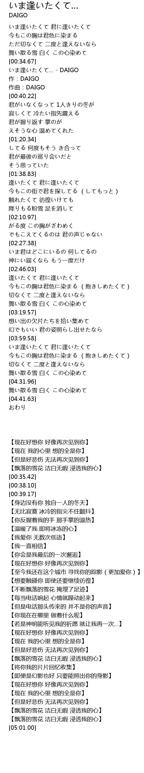 | [00:35.42] | いま逢いたくて… - DAIGO |