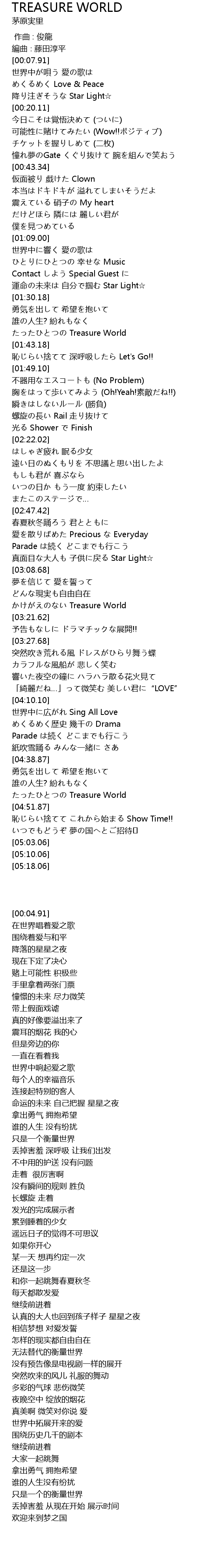 | [02:04.76] | 胸をはって歩いてみよう (Oh!Yeah!素敵だね!!) |