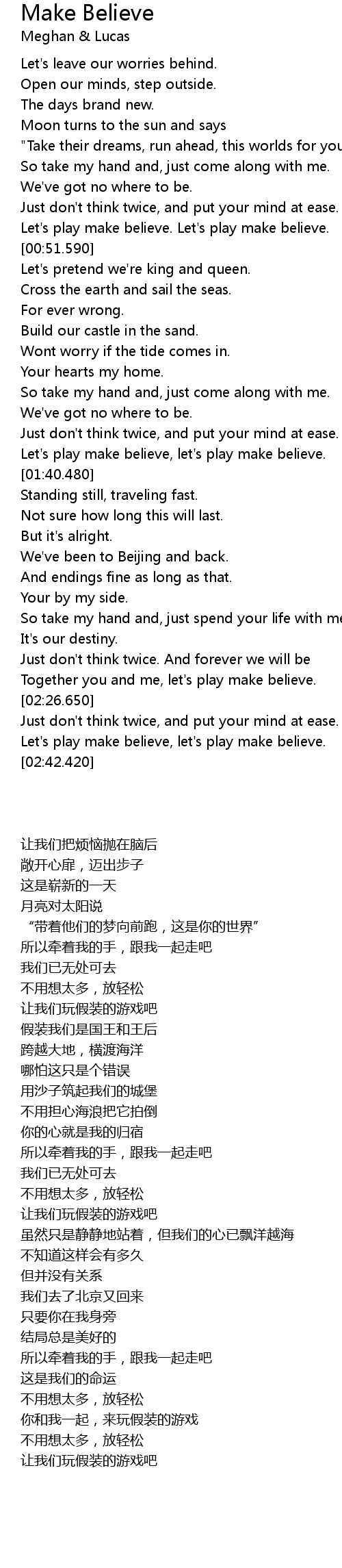 Together you and me, let's play make believe. |