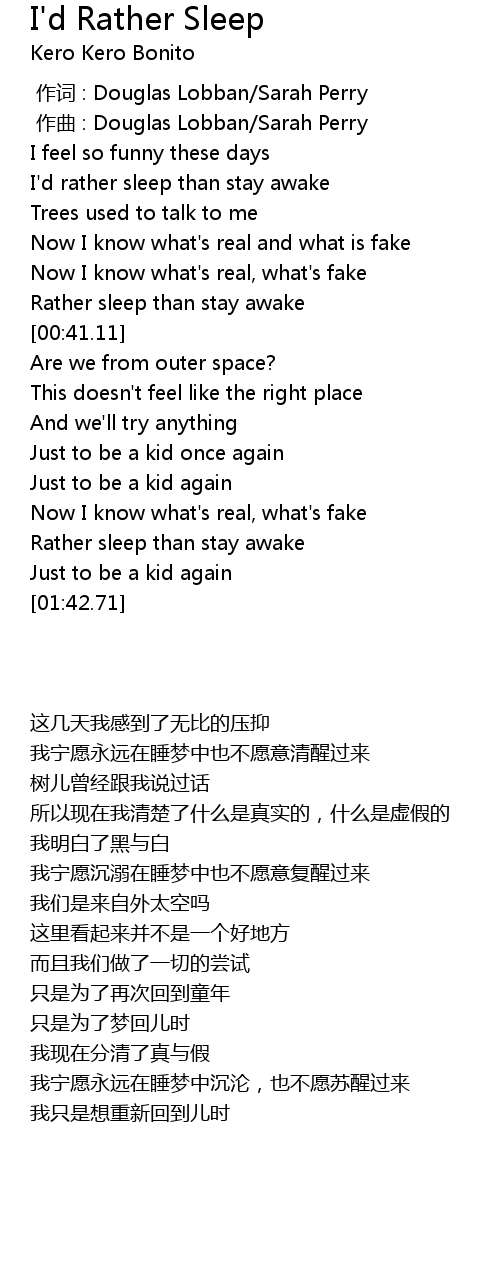| [00:17.67] | I' d rather sleep than stay awake |