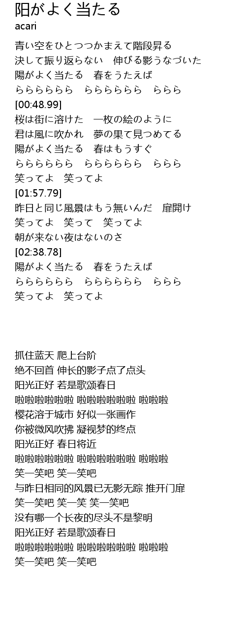 | [02:53.68] | 阳光正好 若是歌颂春日 |