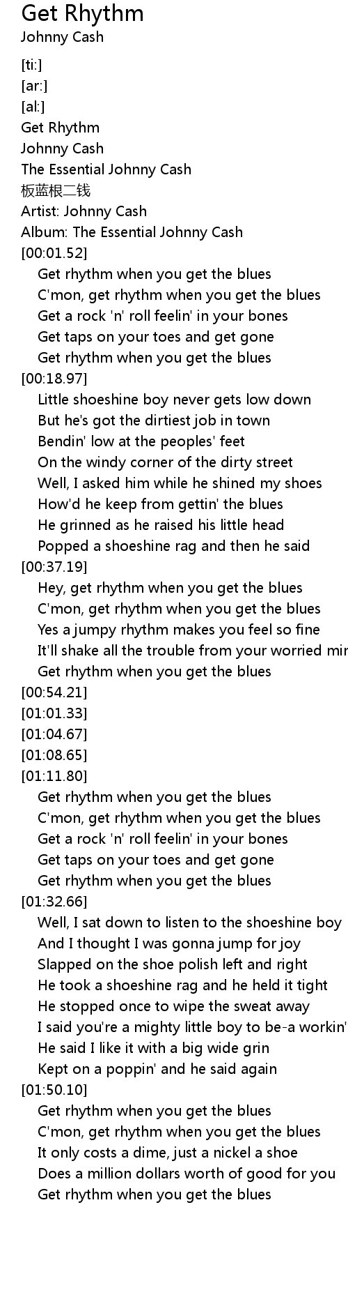 | [01:18.95] | C'mon, get rhythm when you get the blues |