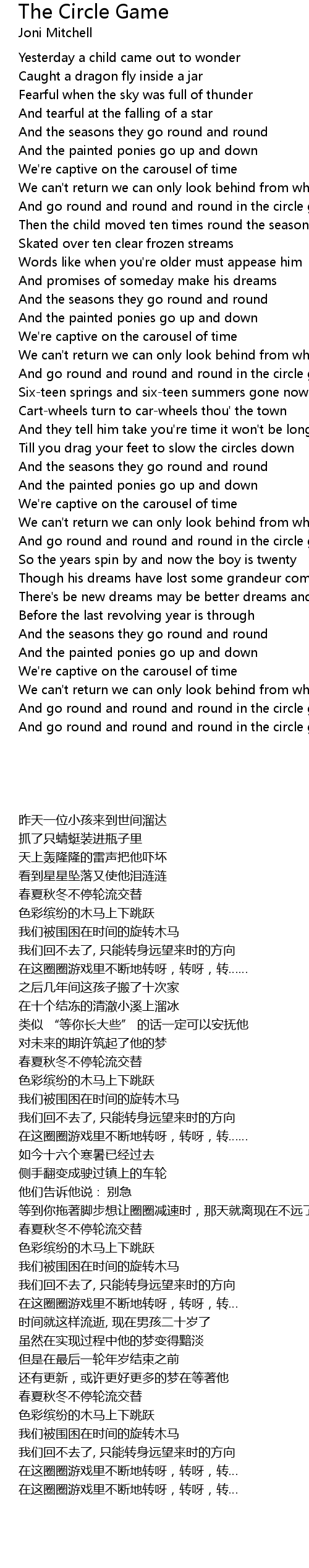 And go round and round and round in the circle game |