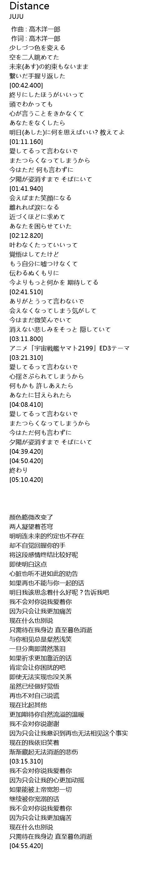 | [03:15.310] | アニメ「宇宙戦艦ヤマト2199」ED3テーマ |