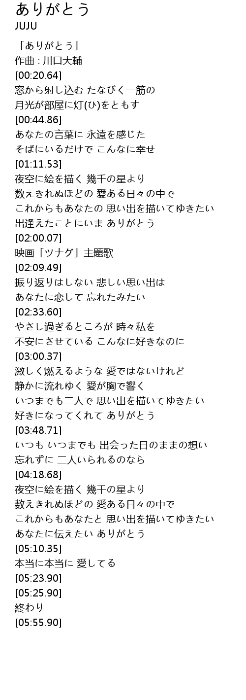 | [05:00.64] | あなたに伝えたい ありがとう |