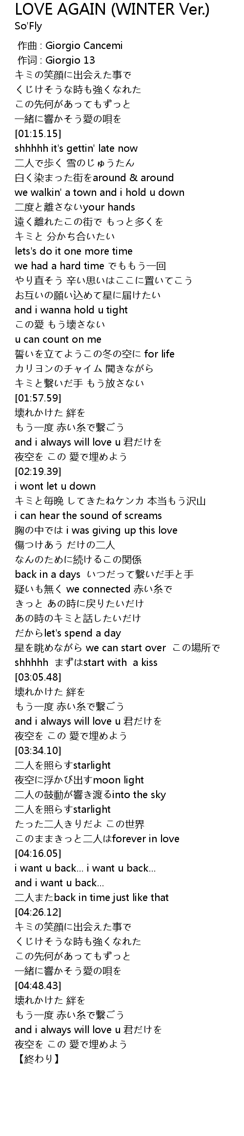 | [01:48.46] | 誓いを立てようこの冬の空に for life |