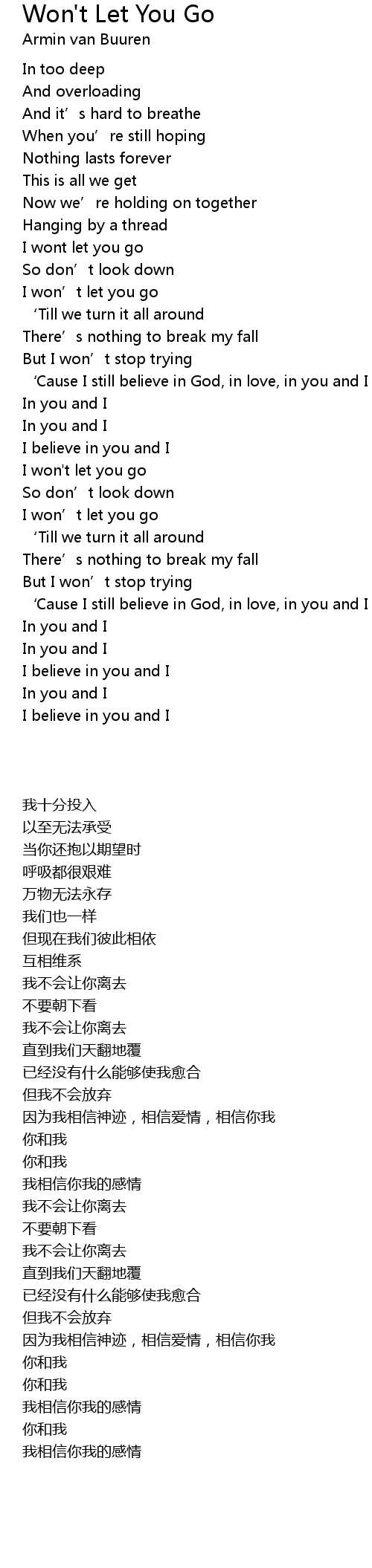 | 歌曲 | Won't Let You Go |