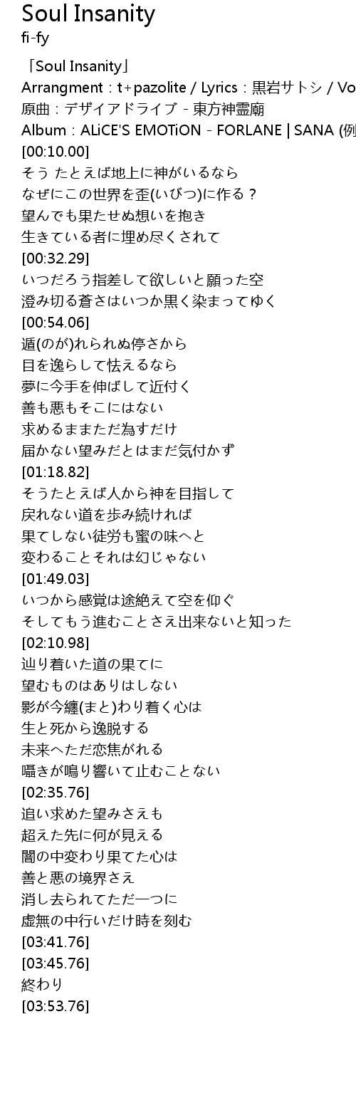 | [00:02.00] | Arrangment: t pazolite Lyrics: hēi yán Vocal: fify |