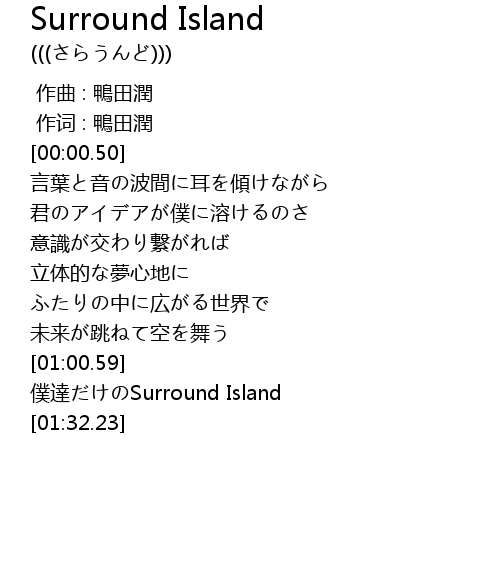 | [01:11.66] | 僕達だけのSurround Island |