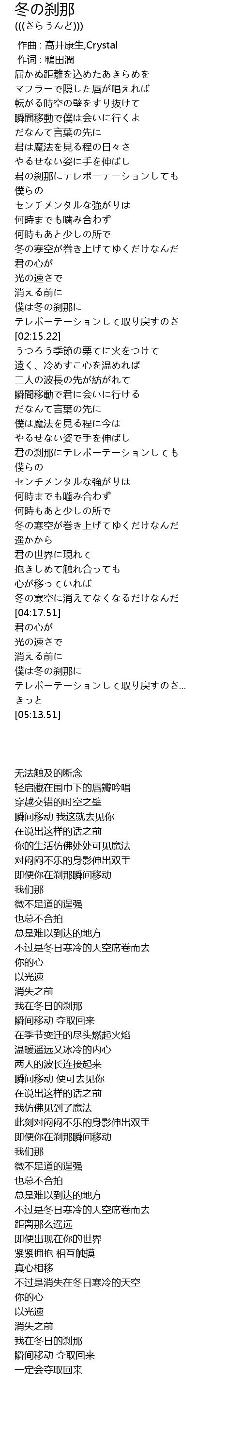 | [03:23.21] | 君の刹那にテレポーテーションしても |