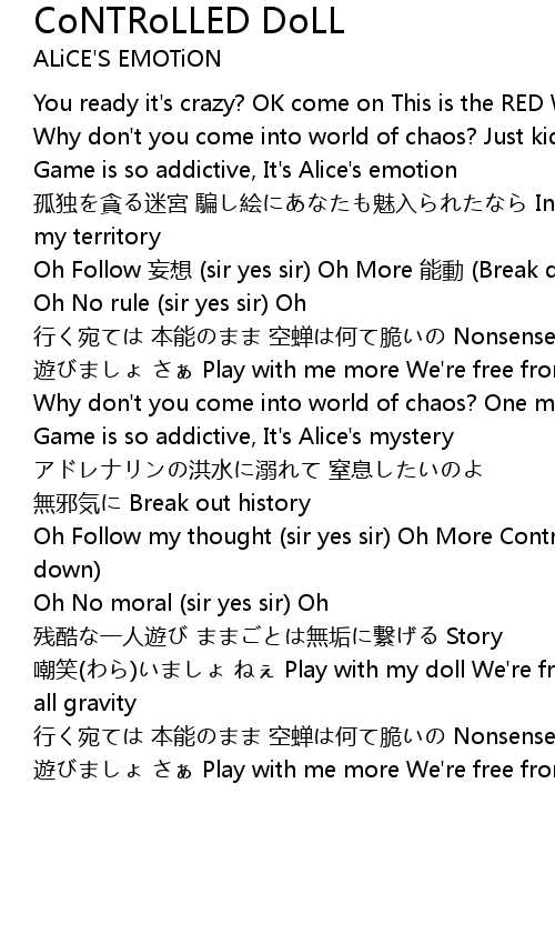 | [01:47.10] | Oh Follow my thought (sir yes sir) Oh More Controlled doll (Break down) |