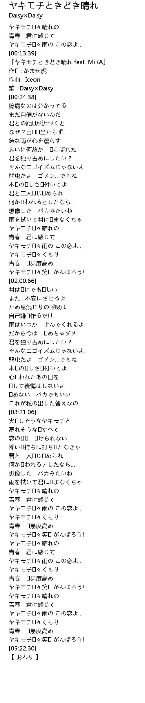 | [05:09.02] | ヤキモチ�々くもり |