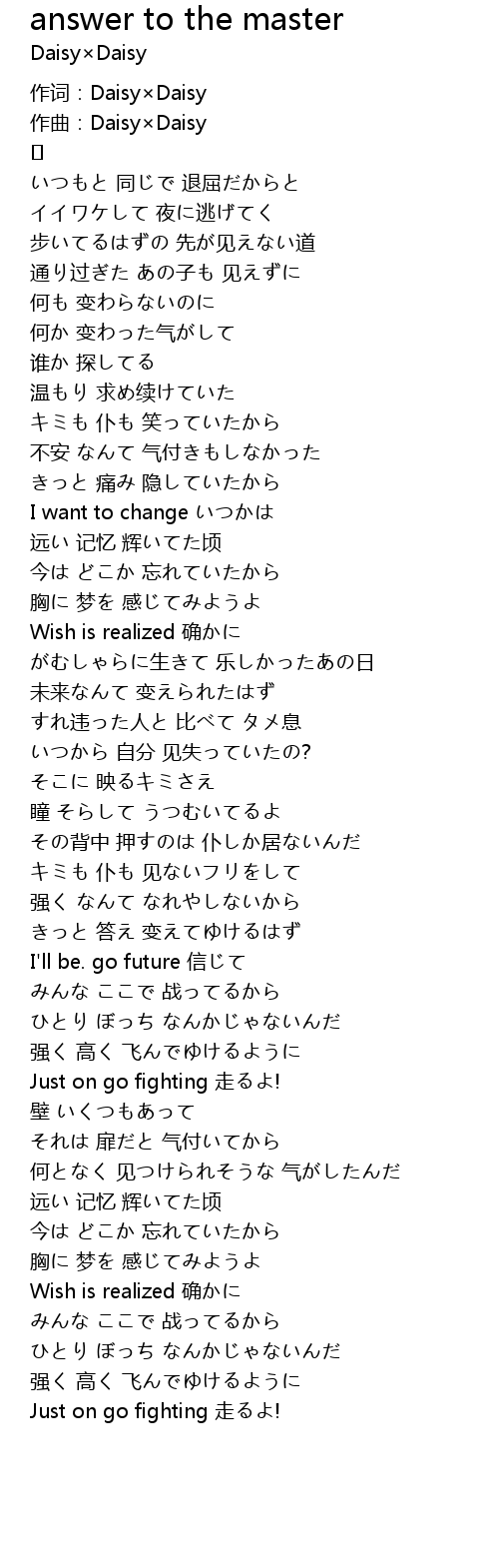 | 歌曲 | answer to the master |