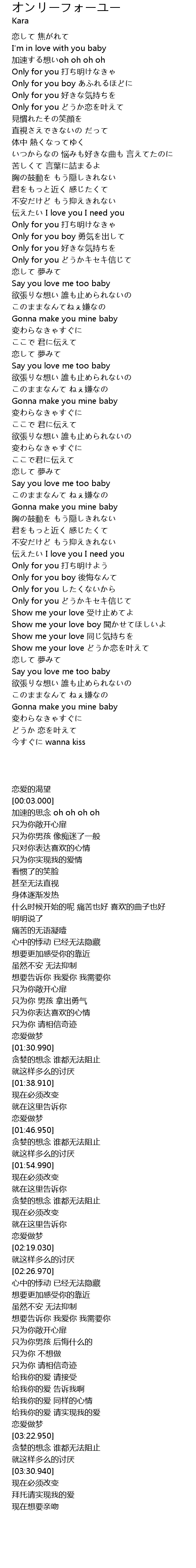 | [02:48.220] | Only for you 打ち明けよう |
