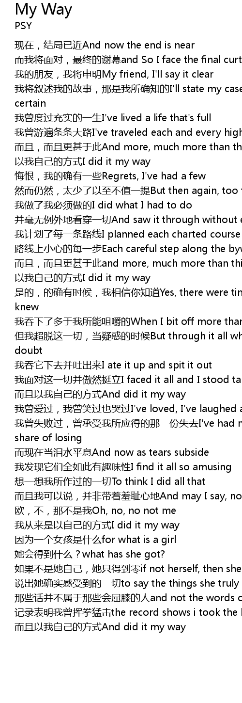 | 我从来是以自己的方式I did it my way | |