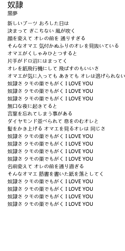 | 奴隷さ クモの巣でもがく I LOVE YOU | |