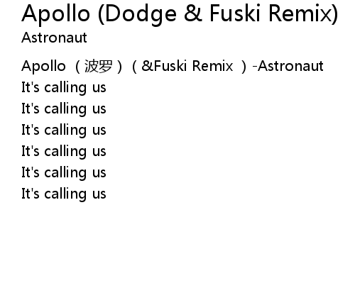 | [00:00.00] | Apollo (波罗)(&Fuski Remix )-Astronaut |