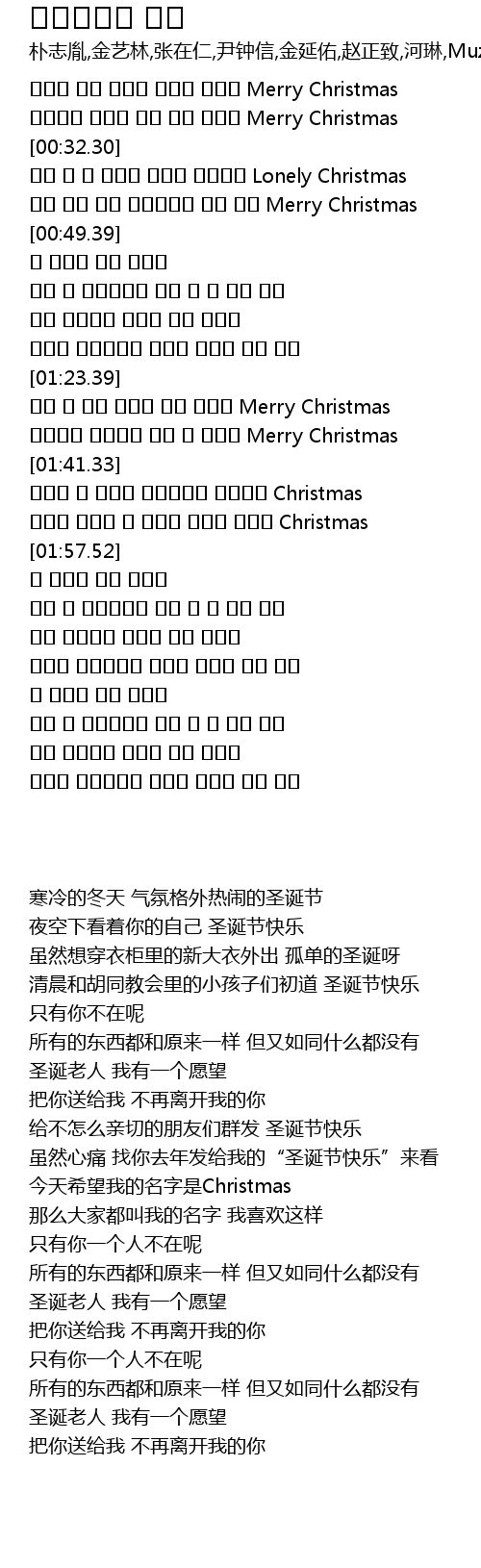 | [00:16.56] | 차가운 겨울 공기가 유난히 시려운 Merry Christmas |