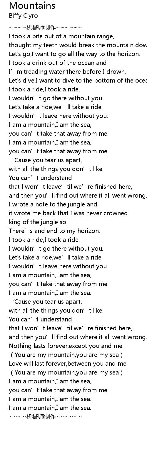 | [02:55.29] | (You are my mountain,you are my sea) |
