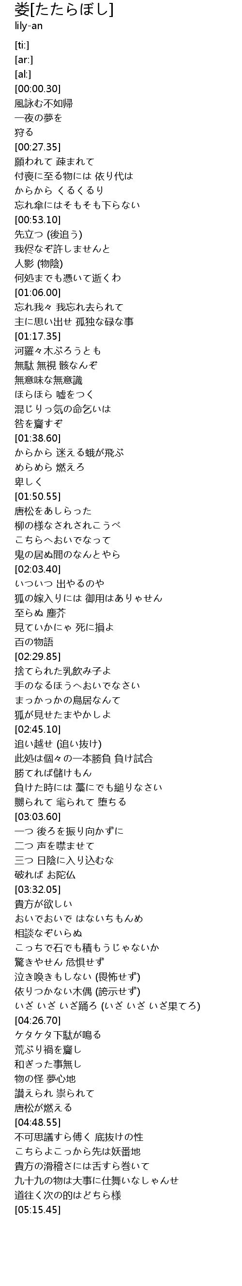| [01:38.61] | からから 迷える蛾が飛ぶ |
