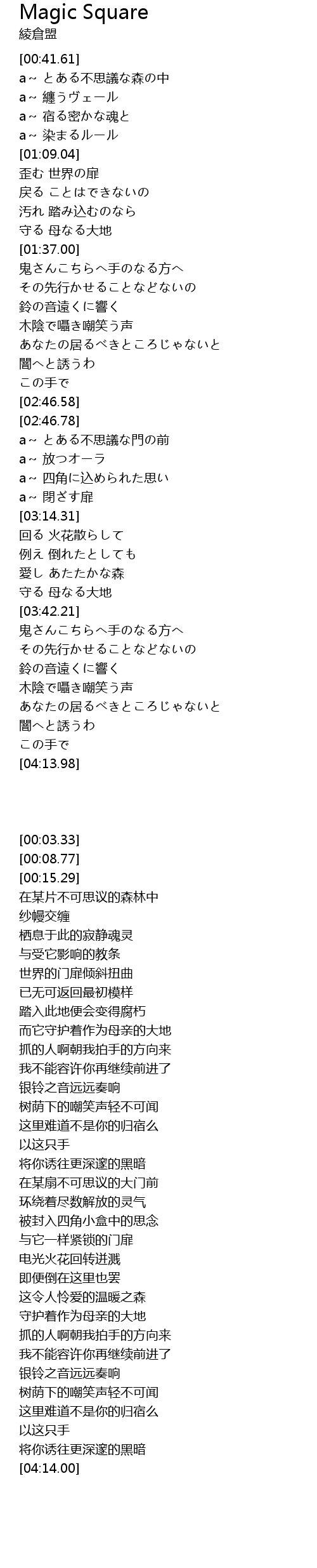 | [03:42.61] | 鬼さんこちらへ手のなる方へ |