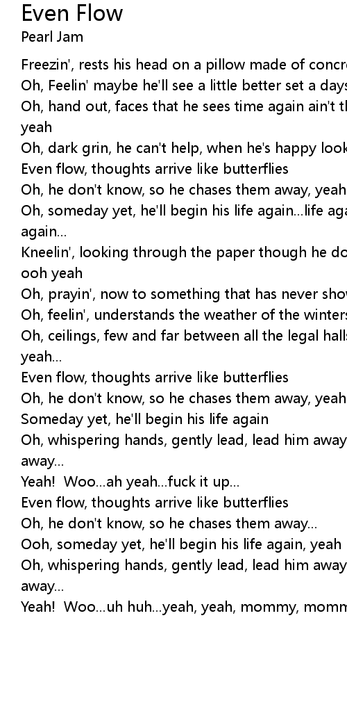 Even flow, thoughts arrive like butterflies |