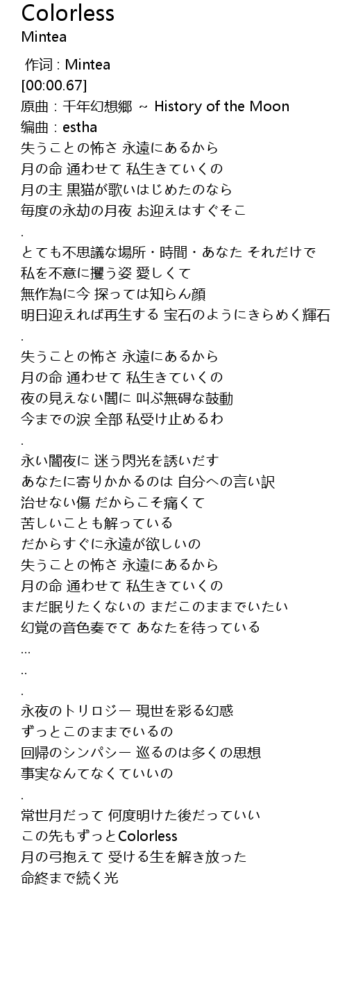 | [00:00.68] | 原曲:千年幻想郷 ~ History of the Moon |