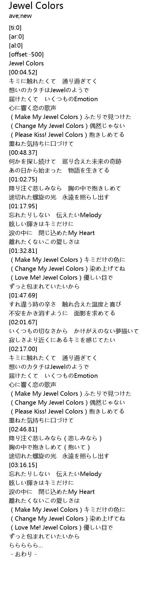 | [00:34.01] | (Make My Jewel Colors)ふたりで見つけた |