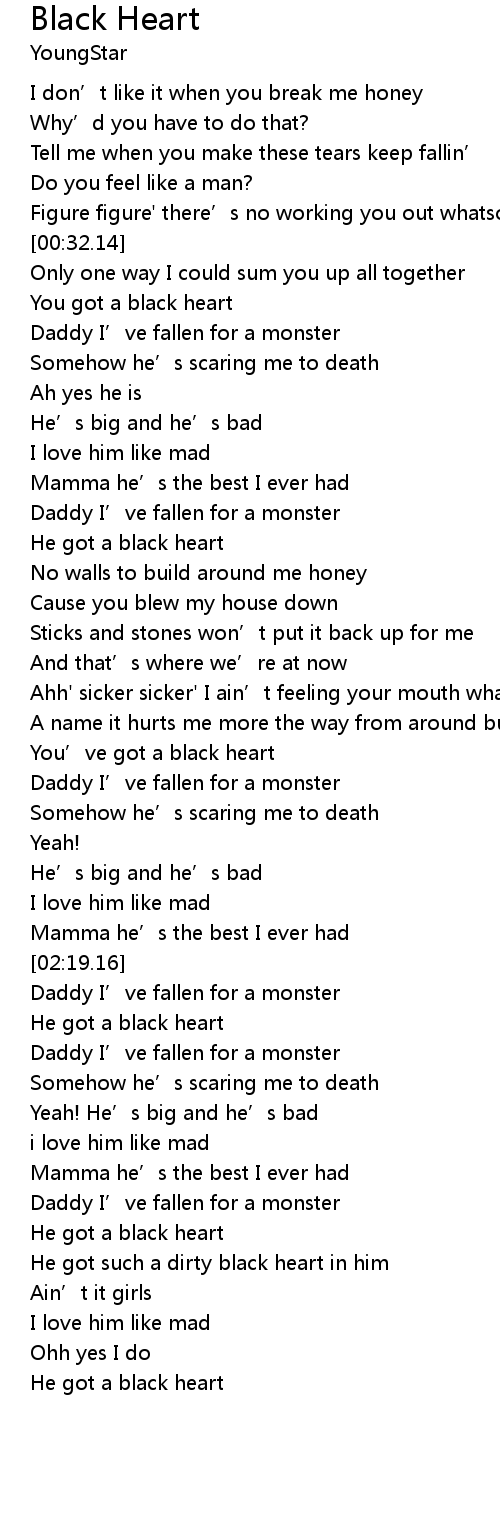 | [03:02.64] | He got a black heart |