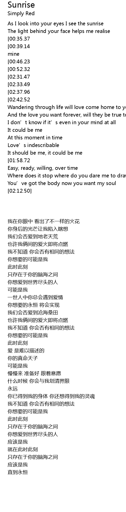 | [00:22.06] | As I look into your eyes I see the sunrise |