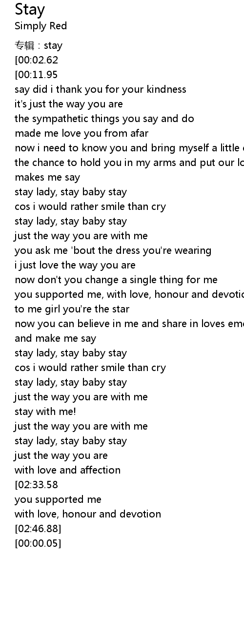 | [02:41.29][02:33.58] | stay lady, stay baby stay |