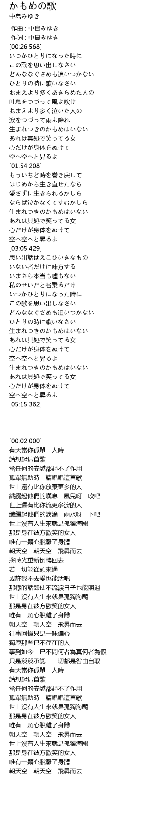 作词 : 中島みゆき |