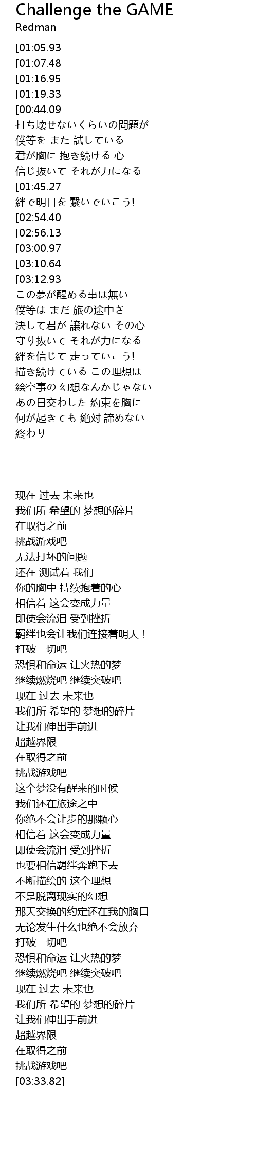 | [00:08.52][01:19.33][03:18.14] | Challenge the GAME |