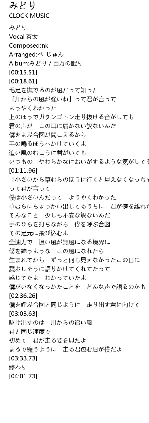 | [01:58.37] | 全速力で 追い風が無風になる境界に |