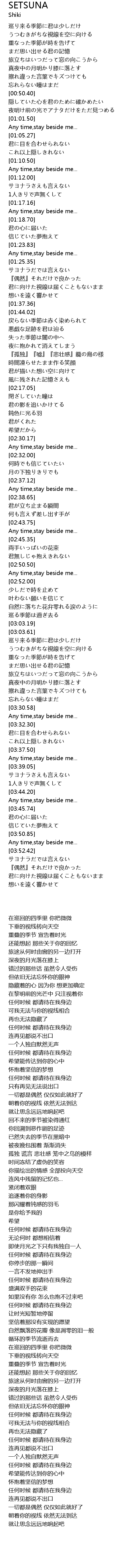 | [03:50.95] | Any time,stay beside me... |