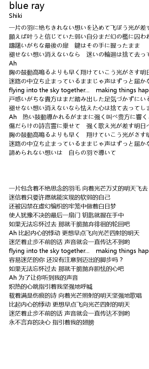 | [02:43.01] | 迷茫着止步不前的话 声音就会一直传达不到哟 |